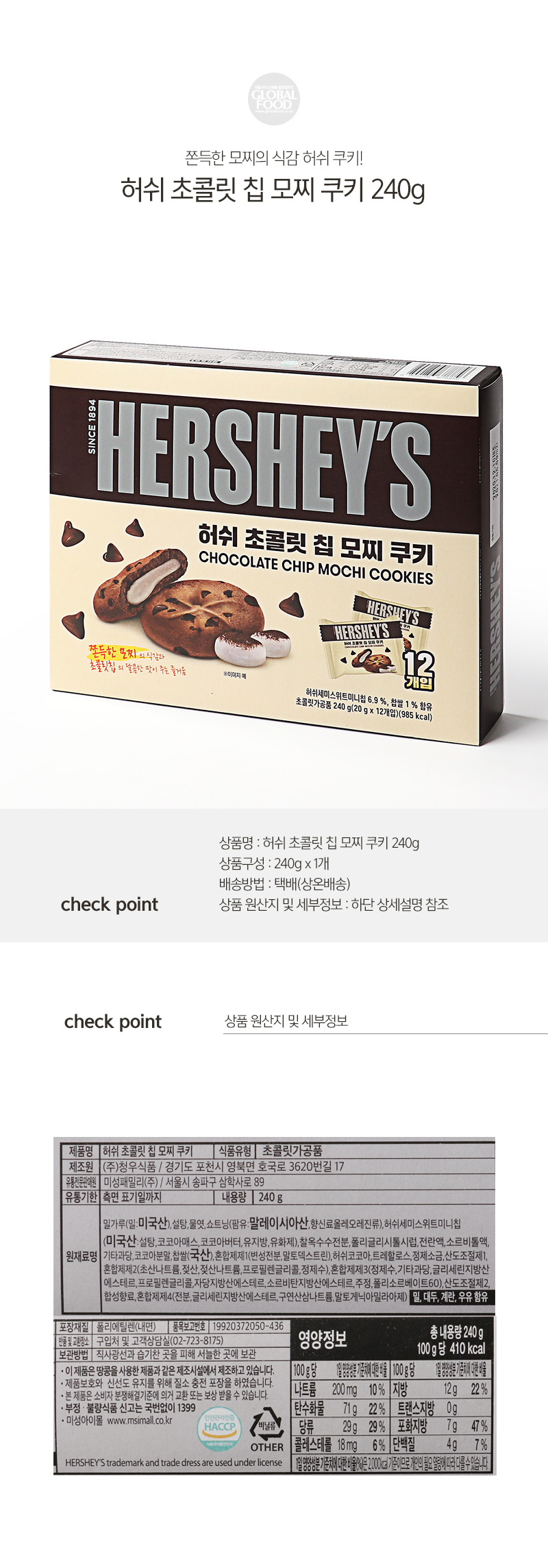 허쉬 초콜릿 칩 모찌 쿠키 240g