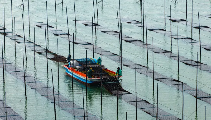 조수간만의 차를 이용한 지주식 김 재배는 김의 영양성분이 풍부하고 밀물과 썰물의 영향으로 김 재배 시 노폐물을 줄여 깨끗한 김 원초 생산이 가능하다는 지리적 장점이 있습니다.