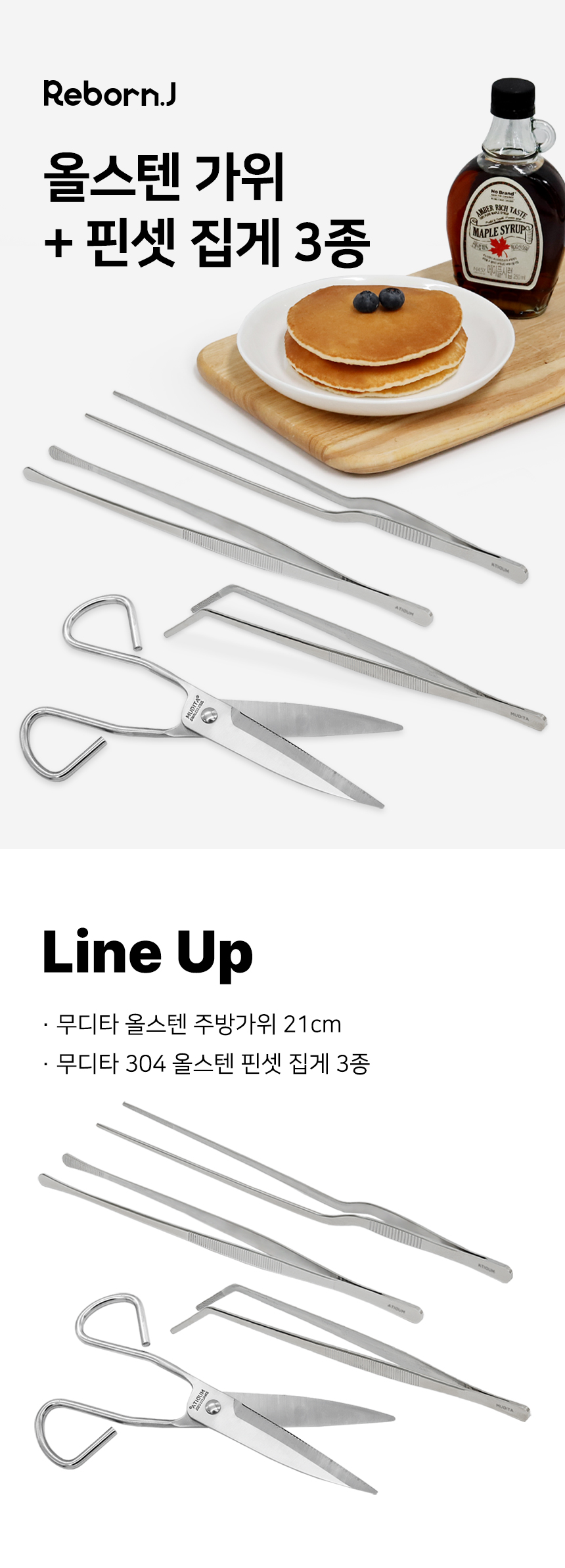 무디타 304 올스텐 요리용 핀셋 집게 3종세트 + 올스텐 주방가위