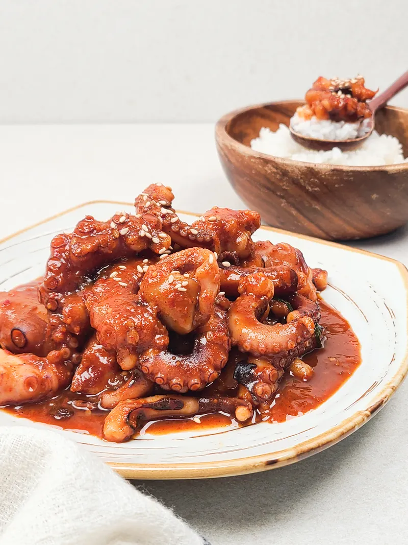 별다른 반찬 없이도 주꾸미볶음 하나면 밥 한 공기 뚝딱 비울 수 있을 거예요! 감칠맛 깊은 양념이 밥과 잘 어울려 곁들여 드셔도 좋고, 볶아서 주꾸미볶음밥을 만들어 드셔도 좋습니다.