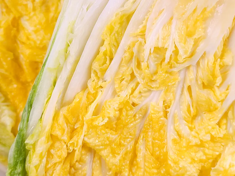 전라남도 해남지역의 휘파람골드를 사용해요. 휘파람골드는 속이 노랗고, 겹이 꽉차있어 겨울 김장시기에 활용하기 적합한 품종이죠. 여기에 불순물 없이 깨끗하고 고운 한주소금으로 준비했어요. 입자가 고와 줄기부터 잎까지 골고루 절여진답니다. 고르게 절여진 실한 배추로 김장을 준비해 보세요.