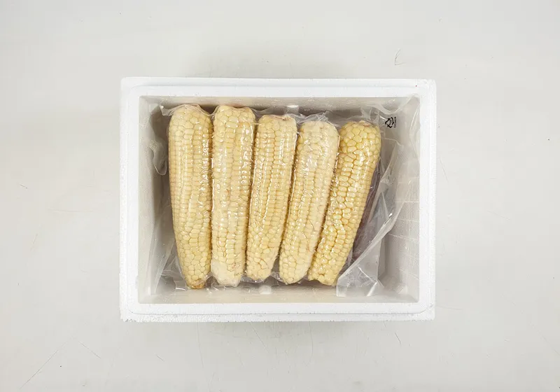 강원 홍천에서 재배한 찰옥수수를 냉동으로 보관해 신선함을 유지했어요. 흑점찰과 미백 두 가지 품종으로 구성되어 있어 각각 다른 식감을 경험할 수 있죠. 알갱이가 쫀득하게 씹히는 특유의 맛이 특징이에요.