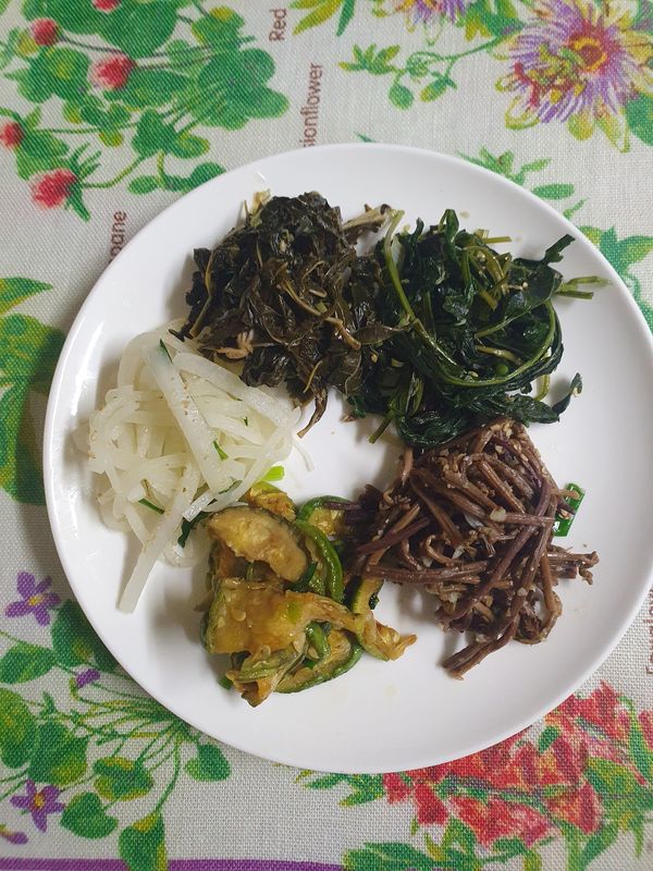 다섯가지 나물 잘 무쳐서 맛있게 먹었습니다