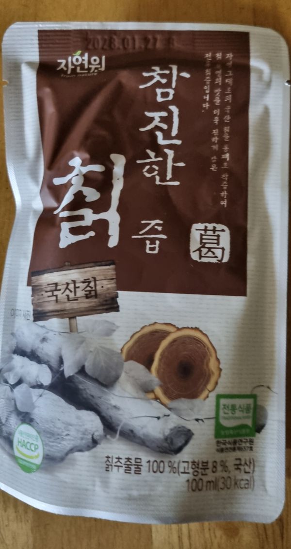 칡즙향이 좋네요 맛있게 남편이랑 한봉지씩 먹었습니다 혈관이 깨끗해지길~