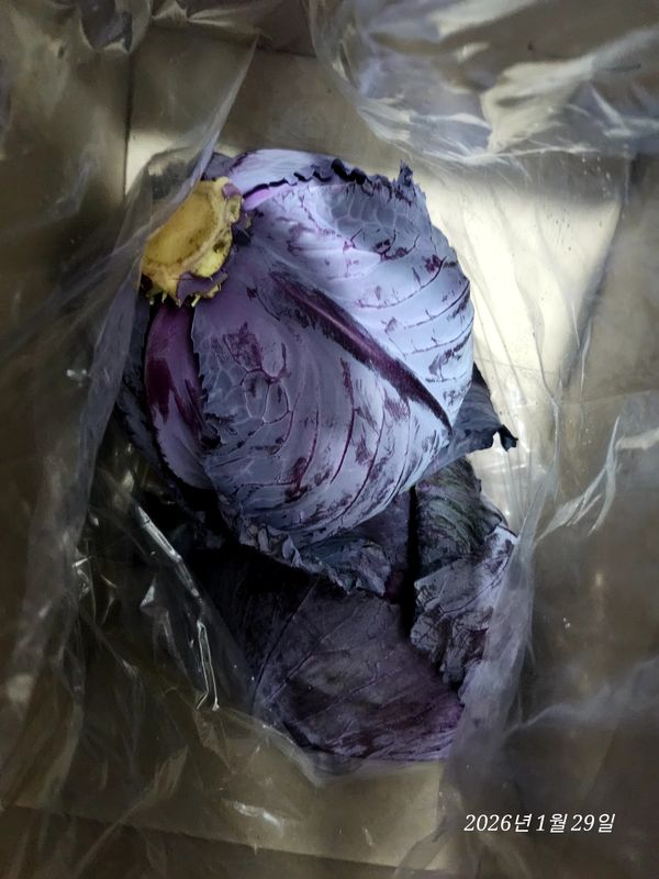 적색 양배추가 싱싱하고 아삭한 것이 2개 도착했네요, 재구매하려구요. 굿.