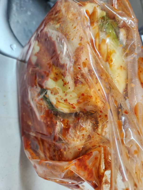 금방 버무린 생김치를 좋아해 늘 1키로씩 자주 시키는데 요번은 김치가 양념이랑 맛이 앞전거랑 다르네요 양념이 앞전보다 덜발려있고 맛도 다르네요. 왜 같은맛이 안나는지 다른제품같아요