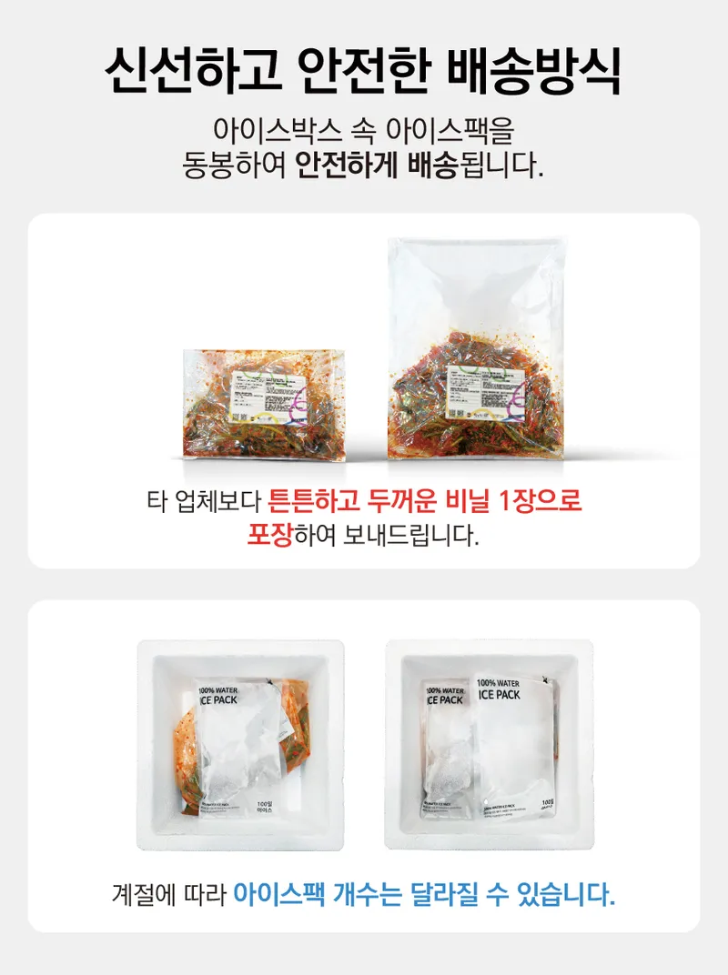 상품은 냉장 상태로 아이스박스에 아이스팩을 동봉하여 보내드립니다.