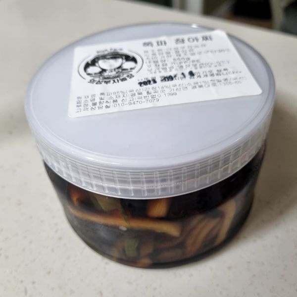 와...이거 정말 미쳤어요~ 배송받고 바빠서 냉장에 넣어두고 오늘에야 꺼내서 족발이랑 먹었는데 ... 고기의 느낌함을 잡아준달까... 신랑이랑..고딩아들이랑 고기에 쪽파장아찌 얹어서 계속먹네요... 간장도 넘 달지도 않고 딱 좋아요.. 저거 다먹으면 장만 끓여 식혀서 마늘 담아 보려구요.. 3통주문했는데 금방 먹을꺼 같아서 또 주문 하려구요