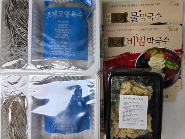 옵션: 초계 막국수 (물) 680g(1인분)*2팩 / 추가 없음 / 초계숙성 닭 가슴살 200g