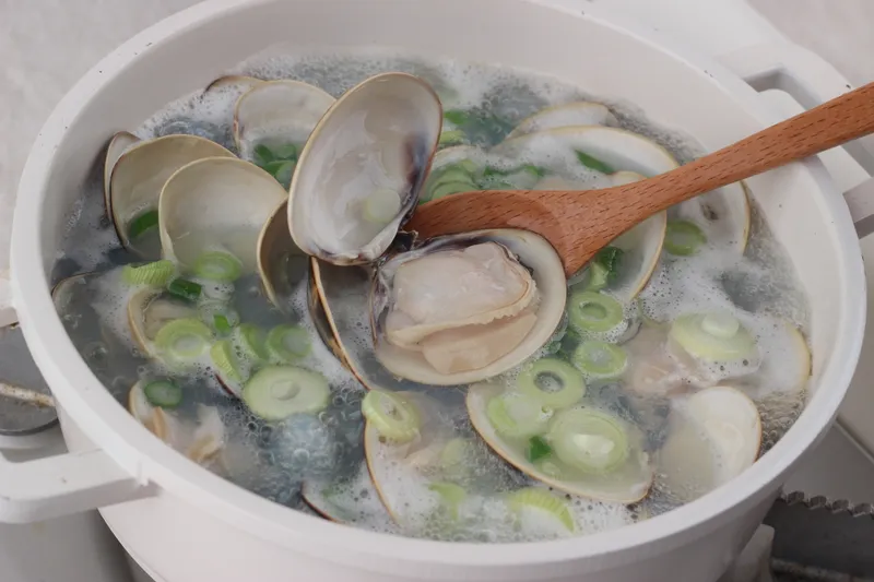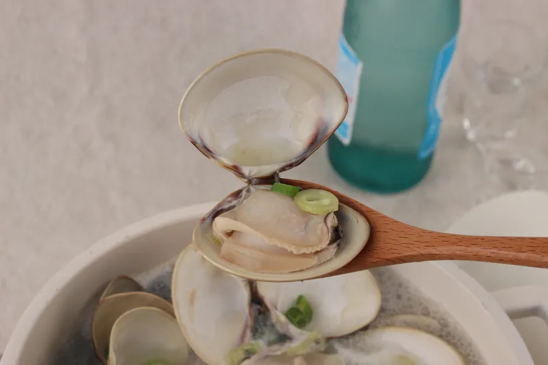 쫄깃쫄깃한 조개 자체의 식감은 물론 별다른 재료나 양념이 들어가지 않고도 백합 자체에서 나오는 깊고 시원한 감칠맛이 일품이에요. 간단한 안주로 시원한 조개탕 어떠세요?