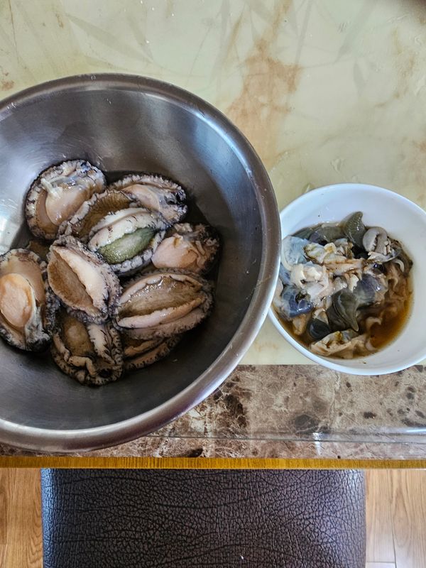 보내주신 솔로 깨끗이 닦아서 치설이빨 주위 제거한뒤 회로 바로 먹고 나머지는 전복죽 만들어서 먹었더니 더 맛있더라구요