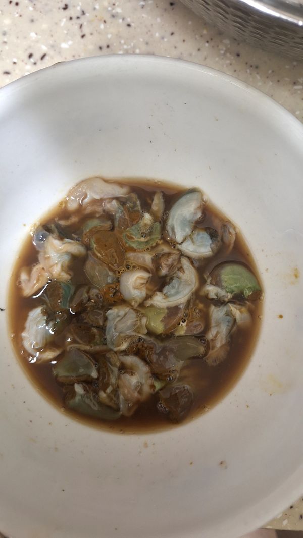 봉투에 물이너무 적게들었네요 이게 정상인가요 전복이 물에잠겨야 맞는거아니예요 여러번 주문했지만 이런건 처음보네요
