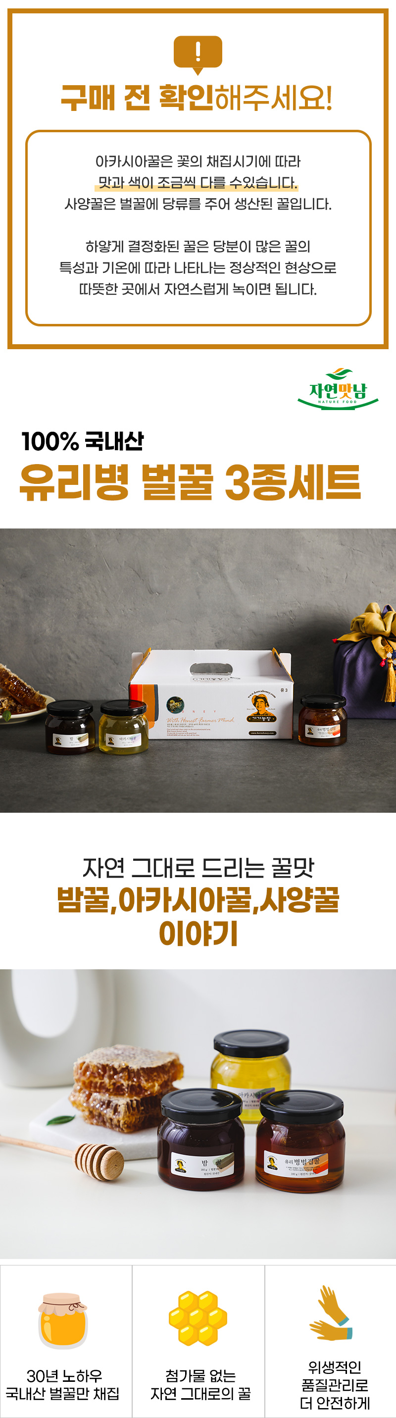 국내산 꿀 유리병 벌꿀3종세트(벌집꿀/아카시아꿀/밤꿀/각175g)