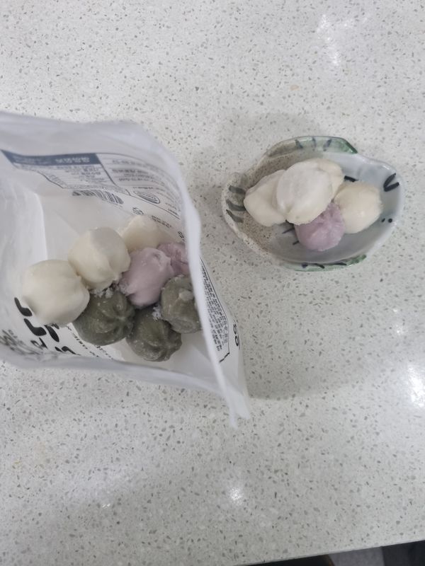냉동했다가 몃개씩 내어놓으면 말랑말랑 금방한떡 같네요 한입물면 속이 차겁게 톡!!터지는게 너무 맛있네요