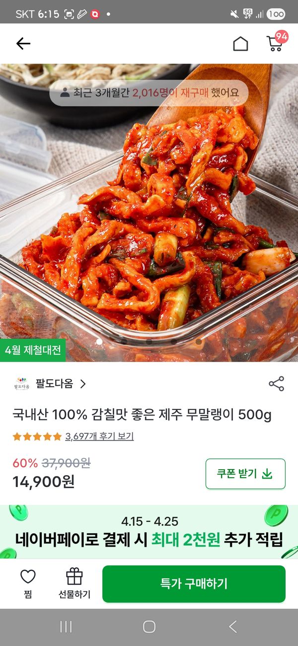 제주 무말랭이 맛있어서 계속 구매하고 있습니다. 마침 1+1 행사가 있어 바로 주문했습니다. 맛있게 잘 먹겠습니다.