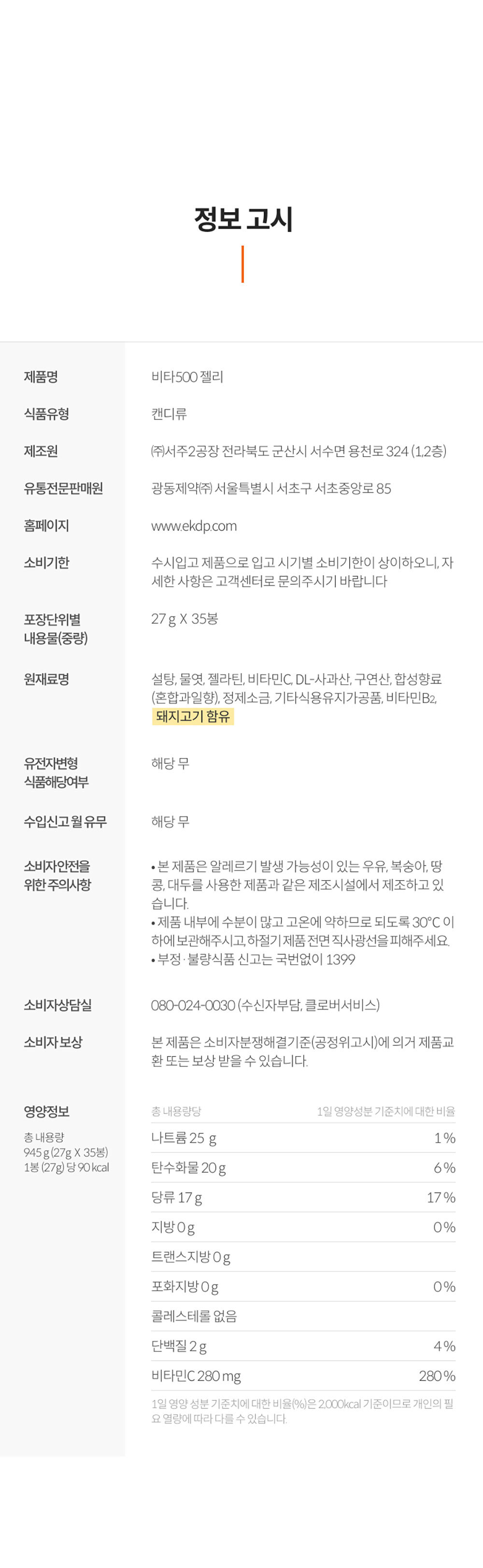 [G] 광동 비타500 젤리 대용량 (27g 35개입) 2개