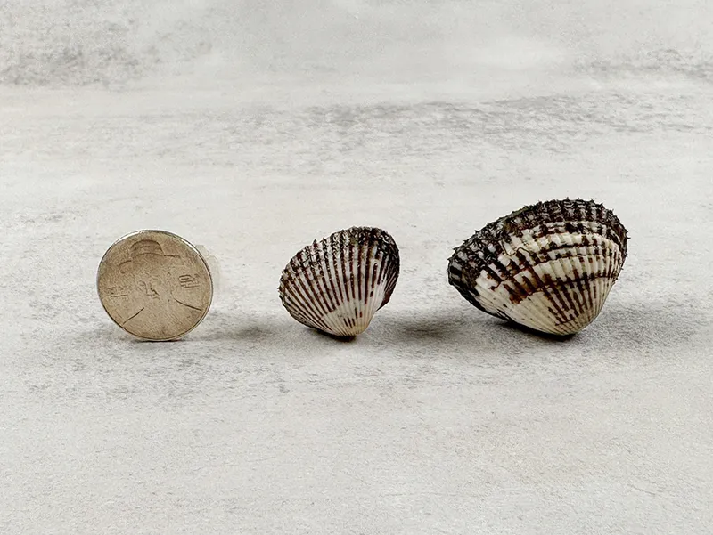 좌측이 소 사이즈, 우측이 대 사이즈 꼬막입니다. 위 사진은 고객님의 이해를 돕기 위한 사진으로 참고용으로 활용해 주시기 바랍니다.
