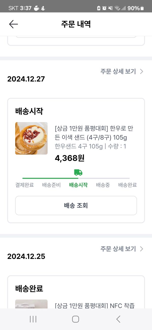 물건은 진직이 받았는데 배송 완료가 안떠서 이제 후기을 쓰네요