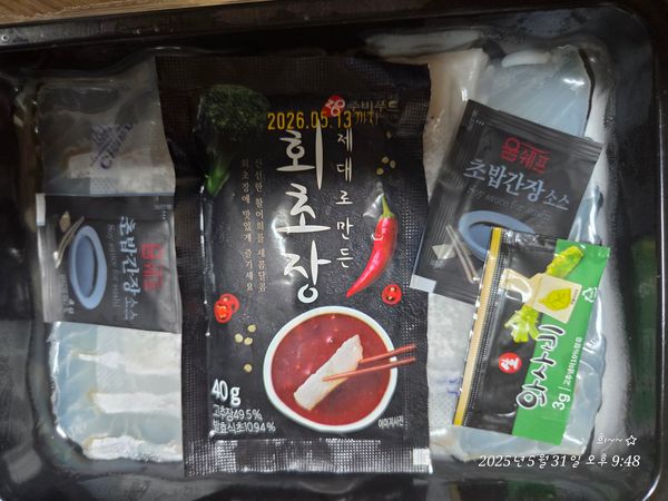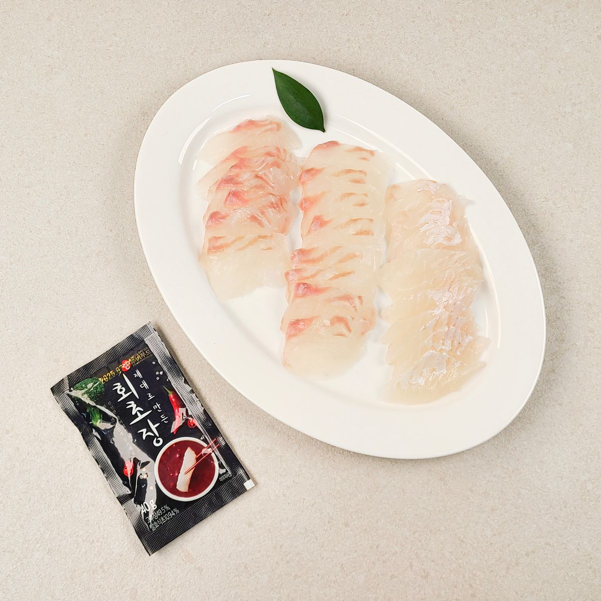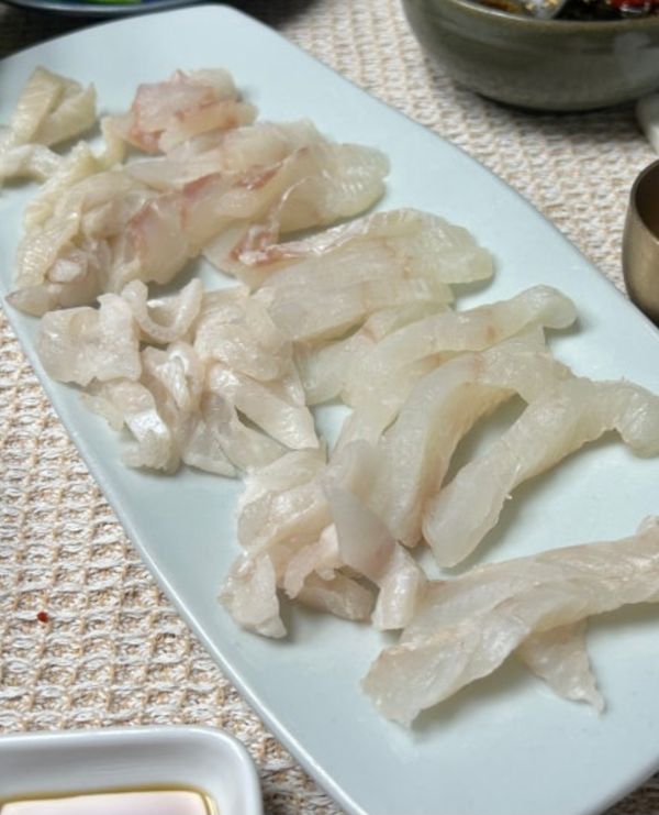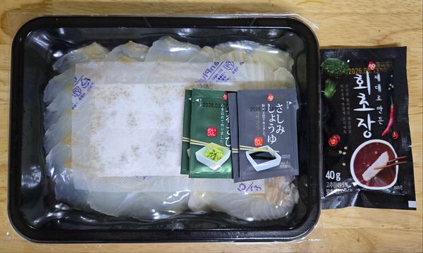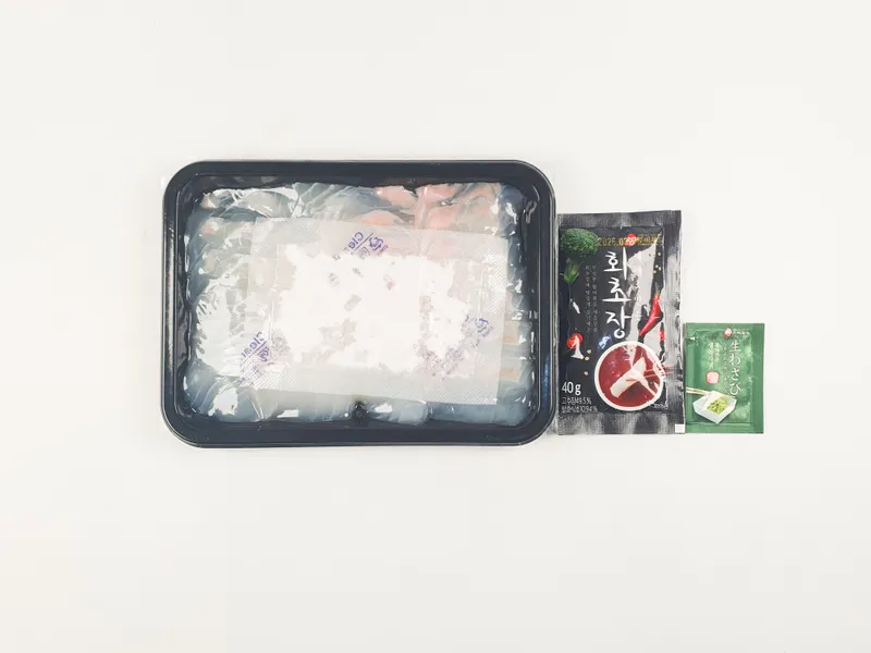 맛있어요! 스킨 포장이라 생선회가 신선하게 잘 배달되어 왔어요. 생선회를 주문하는게 처음이라 걱정했었는데 전혀 걱정할 필요가 없었네요. 먹어 보니 여전히 신선해요! 대광어가 맞는 것 같아요. 회가 달고 쫀득쫀득합니다. 제가 좋아하는 지느러미 부분도 들어있어서 더 좋았어요. 숙성회 특징인 단맛이 잘 나고요 . 비린내는 전혀 없고 물컹한 식감도 없습니다. 초장 간장 와사비까지 같이 주시니 더 준비할 것도 없고 남편과 아들 다 잘 먹었어요.