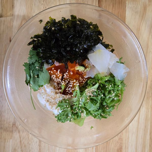 처음엔 같이 보내주신 회간장에 겨자 조금 넣고 살짝 찍어 먹었는데.. 숙성회는 쫄깃보다는 부드러운 쪽인가봐요.. 3분에 1은 그렇게 먹고 나머지는 집에있는 야채넣고 회덮밥 해 먹었는데 잘 먹었습니다.