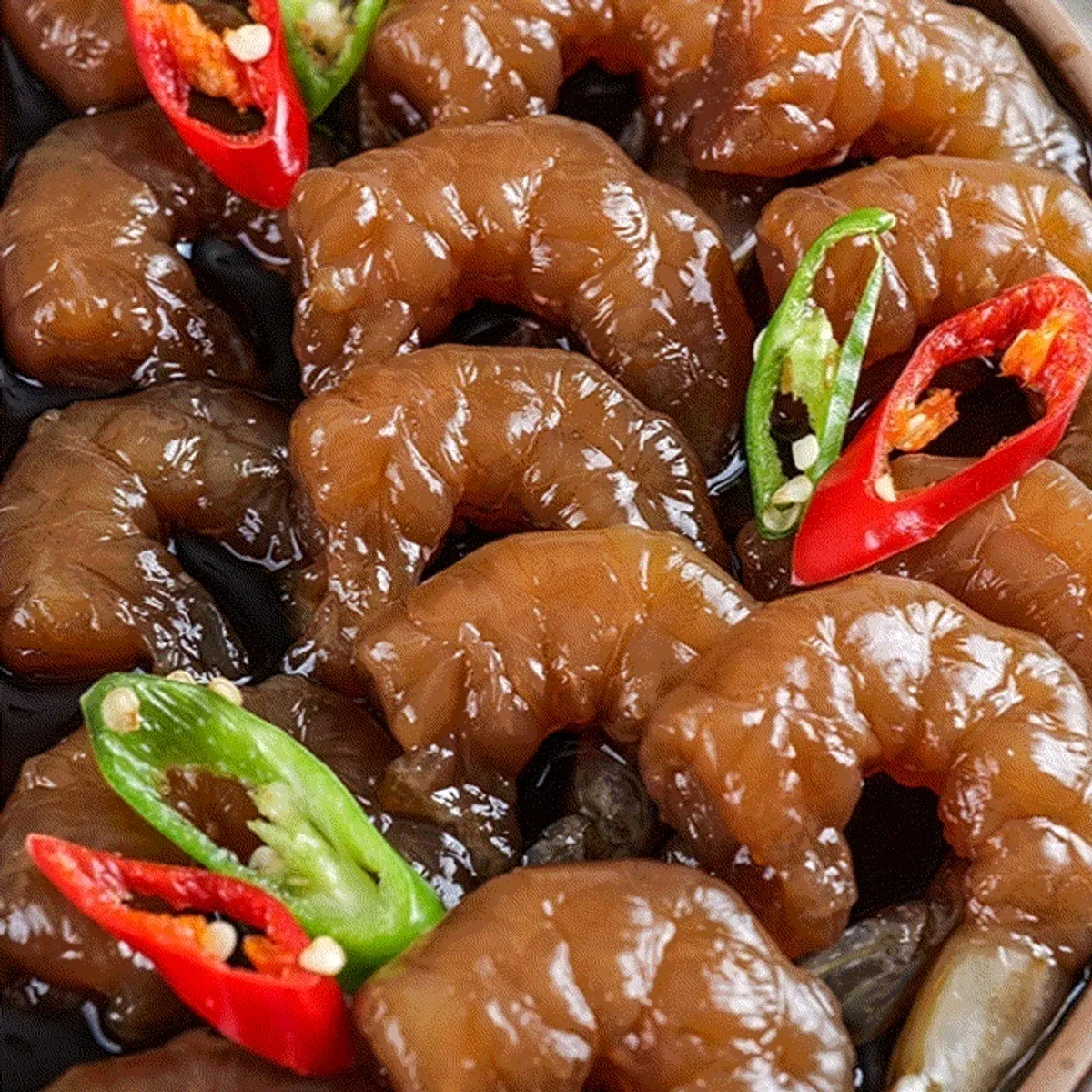 20년 전통의 짜지 않고 맛있게 달달한맛! 멸치, 표고버섯, 다시마로 낸 육수에 천연 재료를 넣어 비법 간장으로 숙성했어요. 새우장을 참기름에 콕 찍어 밥과 함께 김에 싸서 드시면 순식간에 밥 한 공기 뚝딱이에요.