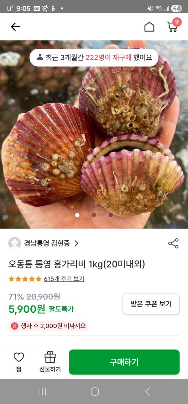 옵션: 홍가리비 3kg