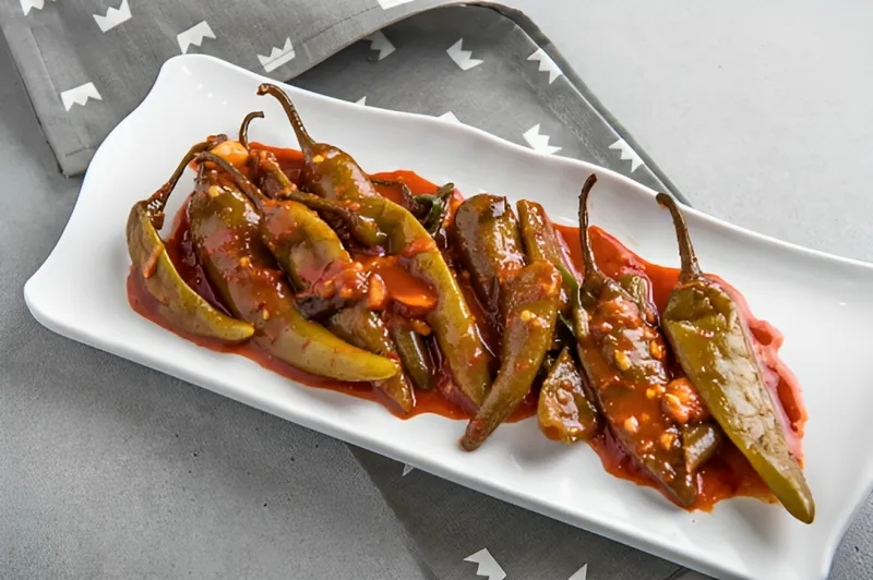 새콤매콤한 맛이 어디에도 잘 어울리는 최고의 밥반찬, 고추장아찌 무침입니다. 신선한 고추를 알맞게 삭혀 제대로 양념했어요. 삼겹살이나 보쌈 등 고기요리와 함께하면 기름기를 확 잡아주는 별미 반찬으로 딱이랍니다. 입맛 없는 날 부담없이 꺼내 즐겨보세요🙌