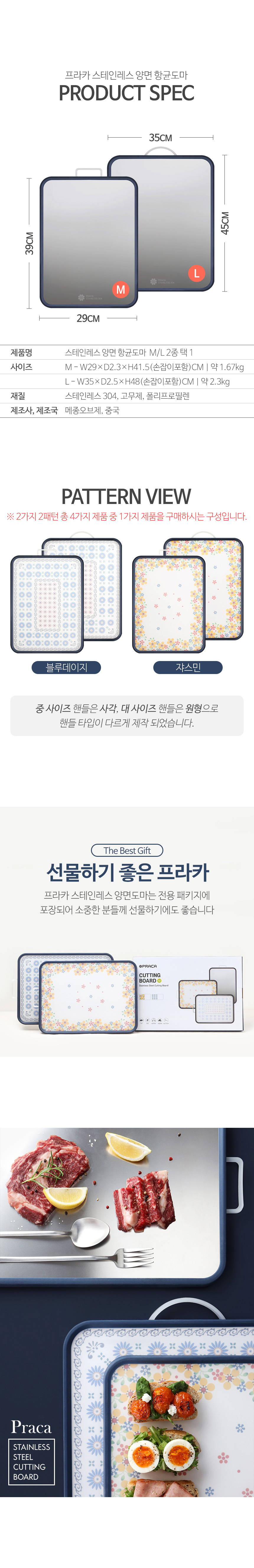 프라카 스테인리스 양면 항균도마 2종 택1 (M,L)