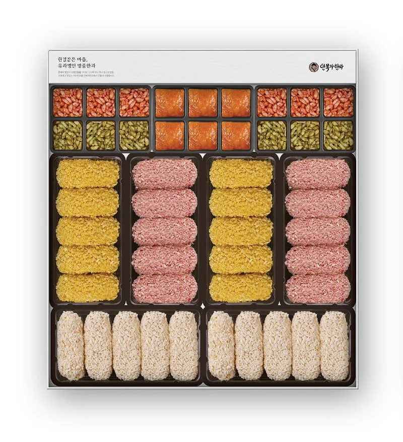 쌀·백년초·단호박 강정, 우리밀 약과, 백년초·뽕잎 쌀엿강정을 한 번에 맛보실 수 있어요. 전통 한과는 한 입 베어 물면 사르르 녹는 식감과 달콤한 풍미를 자랑합니다.