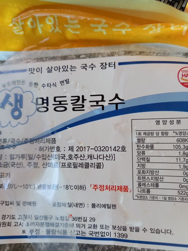 옵션 1. 칼국수 면 500g*1개 + 칼국수 소스 3개 구성