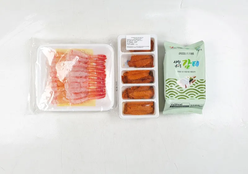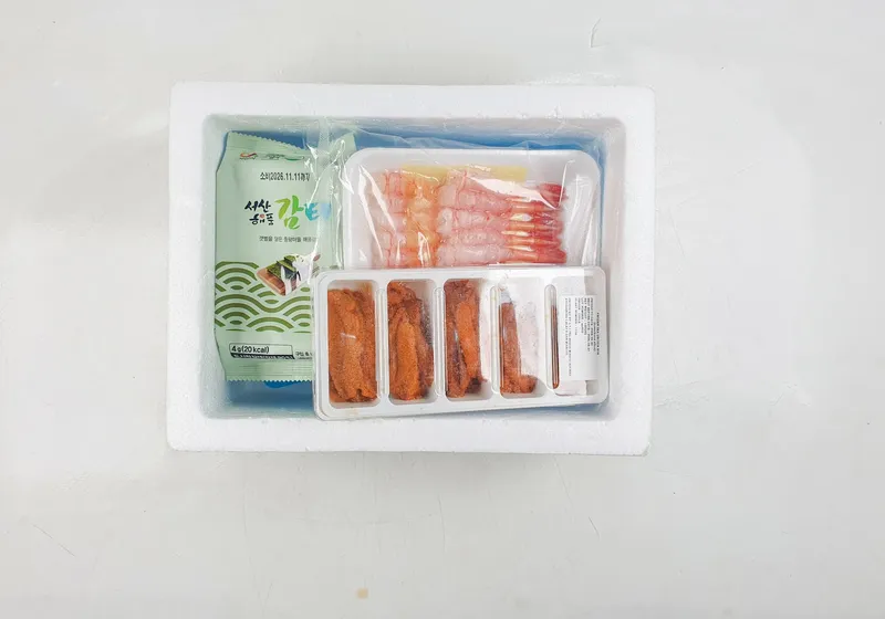 단새우와 성게알은 수령 후 냉동 보관해 주세요. 감태는 냉장 보관해 주세요.