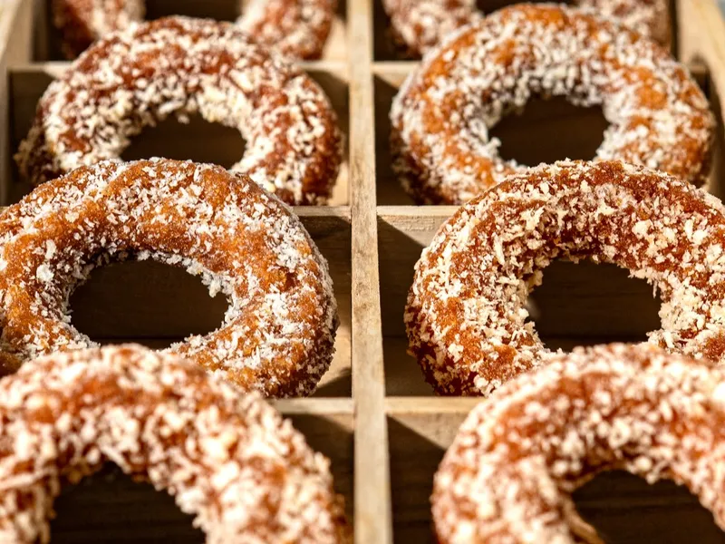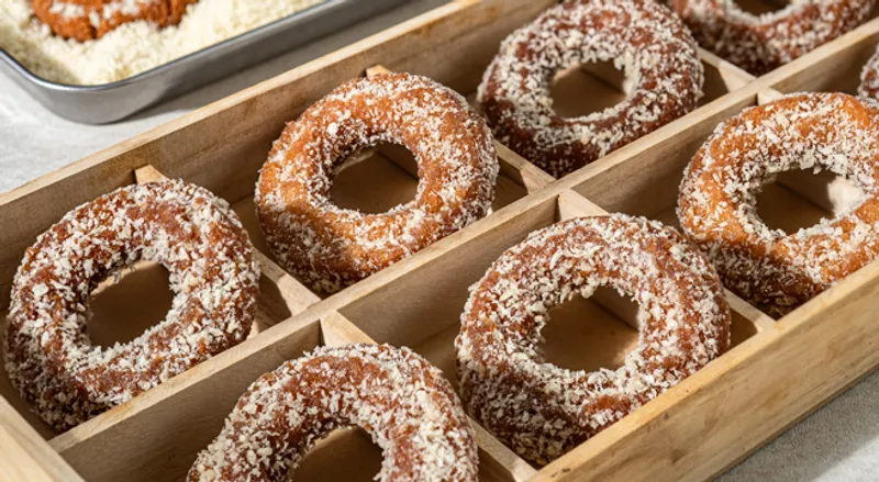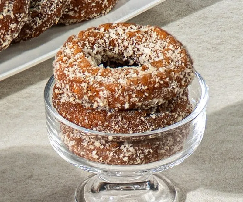 쫀득하고 꾸덕한 약과의 식감을 도넛 반죽에 고스란히 담아, 일반 도넛보다 더욱 풍성하고 깊은 맛을 자랑합니다. 겉은 바삭하고 속은 촉촉하며, 씹을수록 고소함과 달콤함이 입안에 퍼집니다.