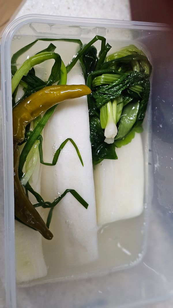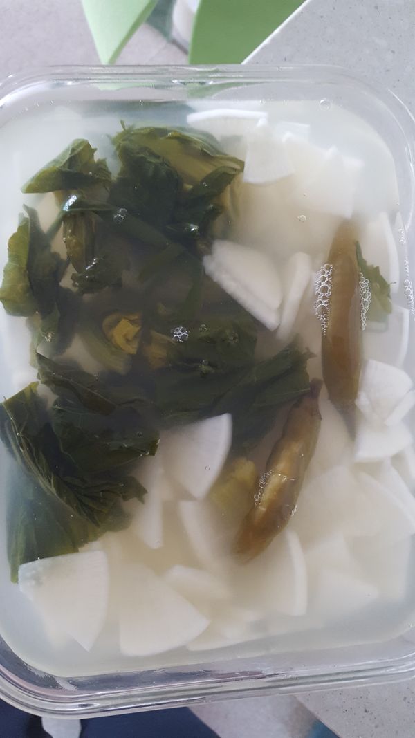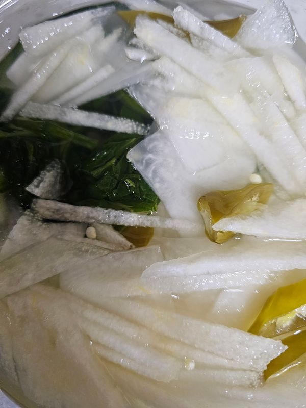 아직 숙성이 안되서 깊은 맛은 안나지만 무우도 정말 연하고 동치미를 정말 얌전하게 담근거 같아요~