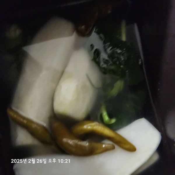 무우가 진짜 맛있네요^^ 익혀서 먹으라고 했는데 못참고 큰무우 하나 썰어서 맛있게 먹었어요^^ 시원하고 아삭해서 항암중인 남편이 입맛을 찾았어요^^ 5키로 많다 생각했는데 무우 하나 건져내니 금방 동나겠어요^^