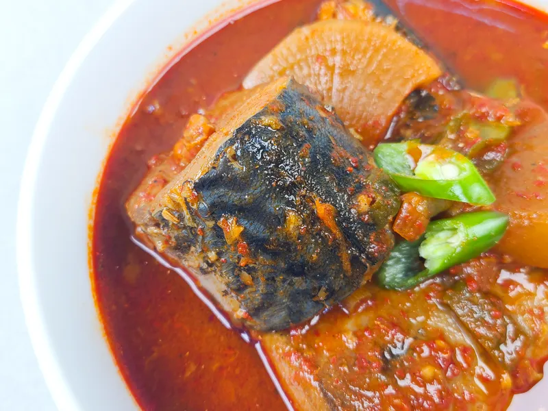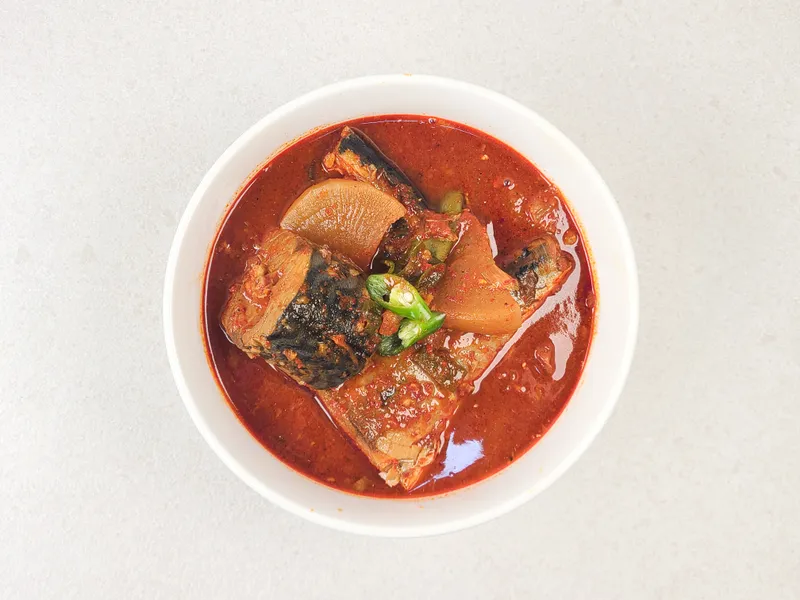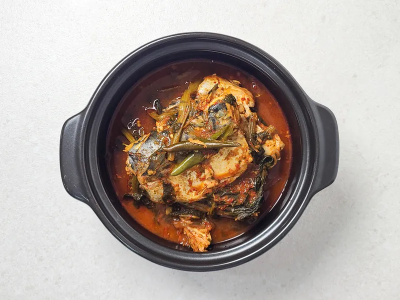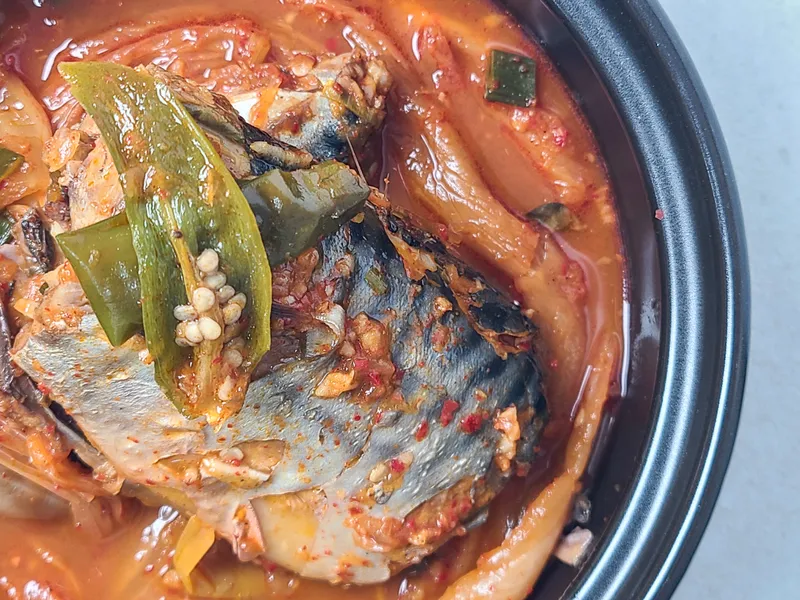 묵은지 특유의 시원한 감칠맛이 고등어와 조화롭게 어우러졌어요.