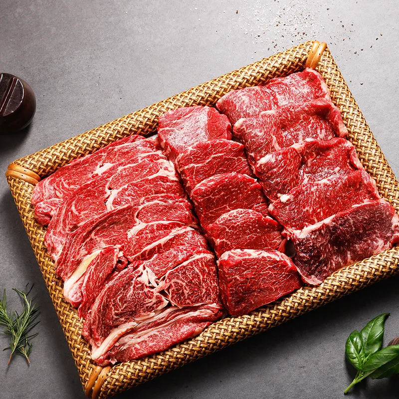 등심 200g, 안심 200g, 채끝 200g으로 여러 부위를 한 번에 푸짐하게 즐길 수 있습니다.
