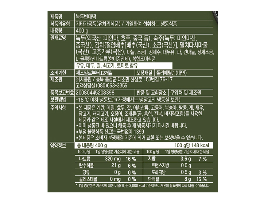 [마녀바스켓] 명절에 빠질 수 없는 사옹원 부침명장 녹두빈대떡400g*
