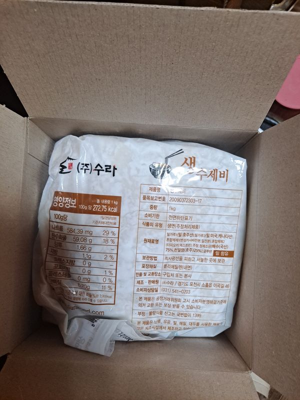 옵션: 생수제비 1kg(5인분)*2팩