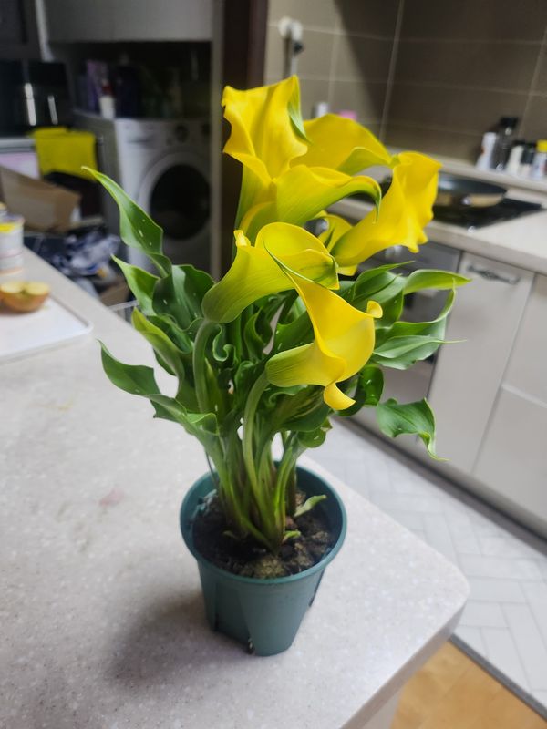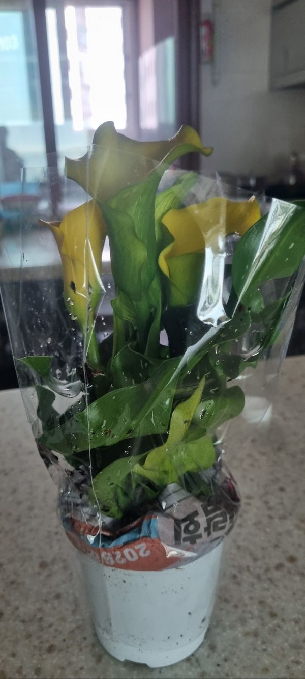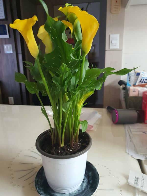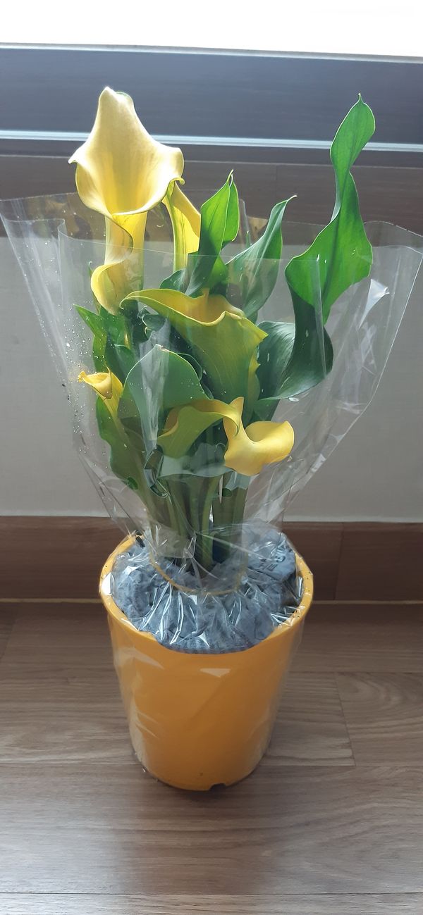 꽃 좋아하시는 엄마한테 선물 드렸어요 꽃도 이렇게 택배로 받아보고 상한 곳 없이 오니 좋네요. 노란 카라 이뻐요