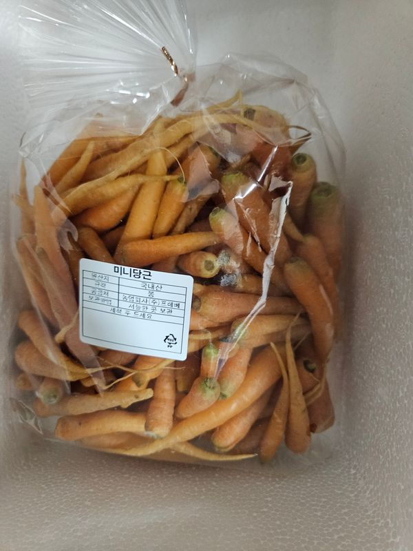 미니당근이라 주머니에 넣어두고 먹고 있어요.맛도 굿~