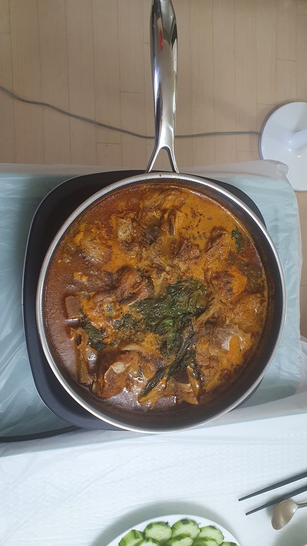 양은 정말 푸짐합니다. 짜지도 않고요...좀 더 끓여야 뼈가 잘 분리될거 같아여. 깻잎 대파 등등을 넣어먹음 더 맛날고 같습니다