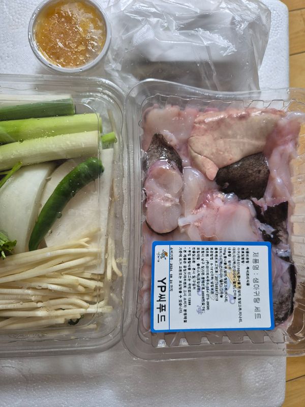 아구 손질이깔끔하고 2인이먹기좋았어요 싱싱하고요 육수도 미리내서 통에담아주심더좋을것같아요 후다닥해먹게요 사진은 먹느라못찍었네요