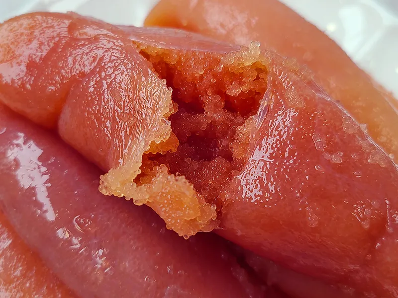 살짝 프라이팬에 구워서 슬라이스한 뒤 오이, 마요네즈와 함께 먹거나, 속을 긁어서 마늘 명란파스타로 요리해 보세요😊