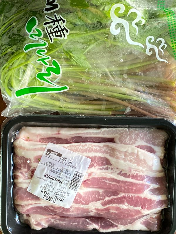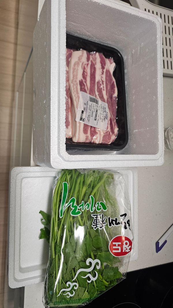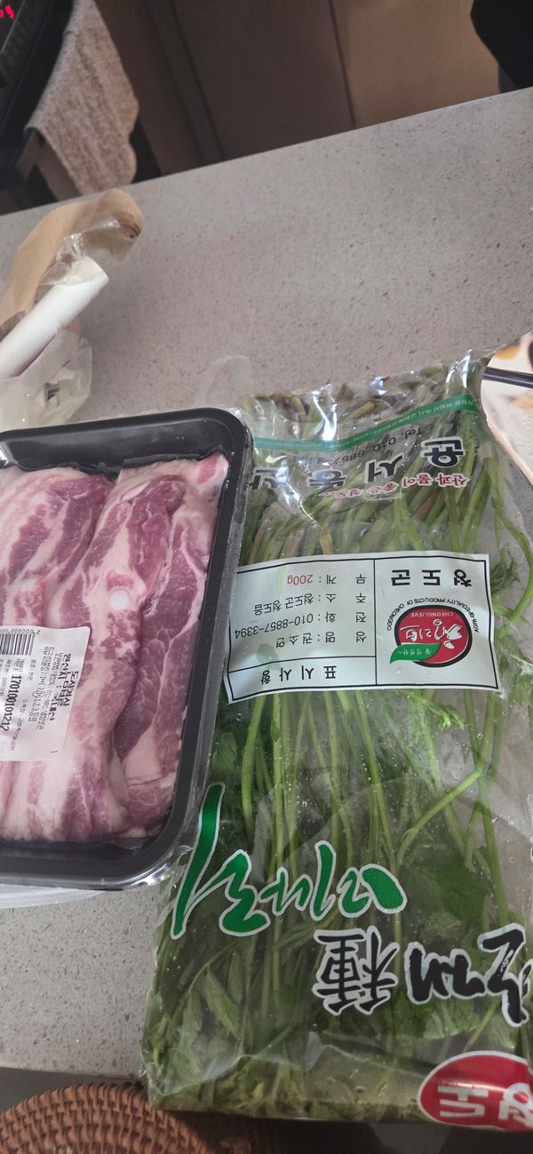 미나리도 싱싱하고 삼겹살도 품질이 조으네요