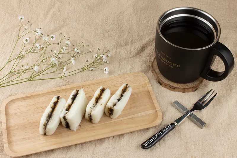 포슬포슬 부드러운 백설기 사이에 고소한 흑임자가 쏘옥 들어간 흑임자설기입니다. 한 입 베어물면 입안 가득히 진~한 흑임자 향이 퍼져 극강의 고소함을 자랑해요👍🏻 흑임자 층에는 흑설탕으로 건강하고 은은한 단맛을 추가해 기분 좋아지는 달달함과 고소함이 완벽한 조화를 이루어냅니다.