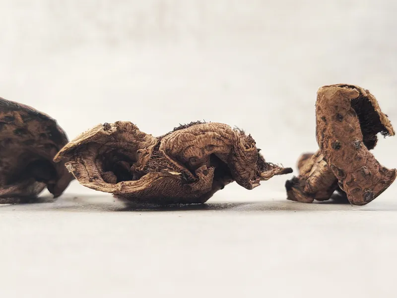 - 능이버섯은 건조 과정에서 거무스름한 색을 띠게 됩니다. - 생 능이버섯 1.2kg 정도를 건조했을 때 100g의 건능이버섯이 됩니다. - 능이버섯은 건조과정 중 색이 거뭇거뭇해지면서 풍미가 더욱 짙어집니다.