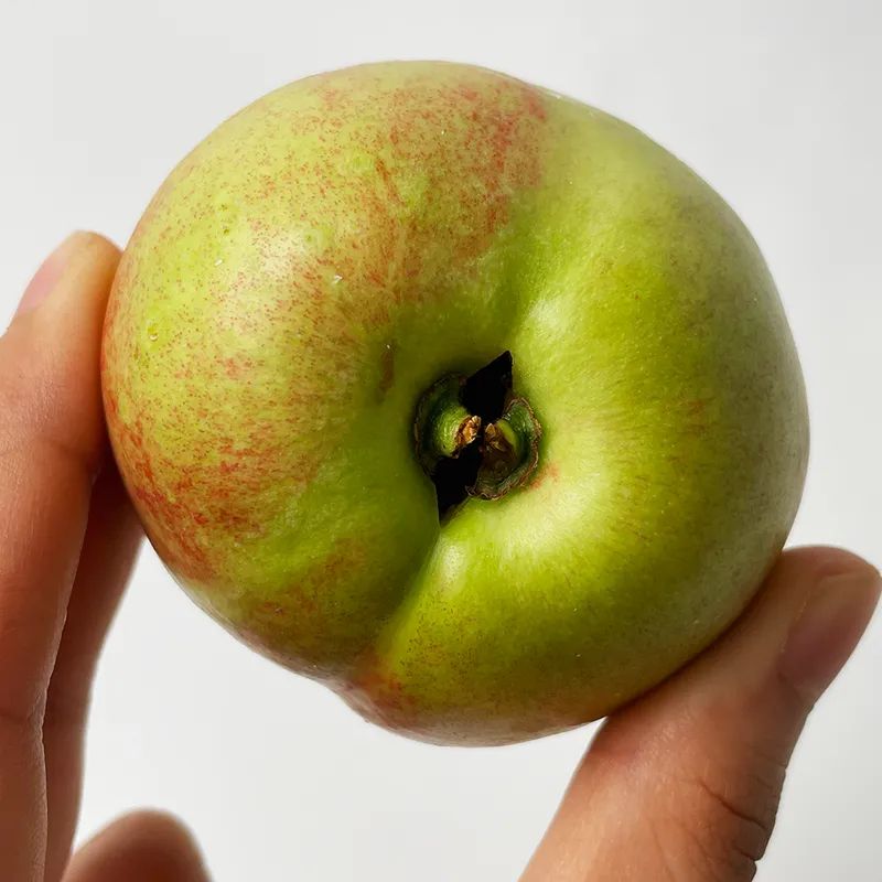 신비복숭아는 품종 특성상 일반 복숭아에 비해 크기가 작은 편입니다. 성인 손바닥보다 작은 편으로 자두처럼 귀여운 크기예요.