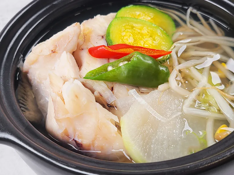 완도산 청정 다시마, 남해산 멸치와 디포리(밴댕이), 외 6가지 야채로 육수를 우렸기에 깊은 해물맛을 극대화해 줍니다. 따뜻한 국물이 생각나는 날, 대구 맑은탕으로 뜨근하게 속을 데우세요.