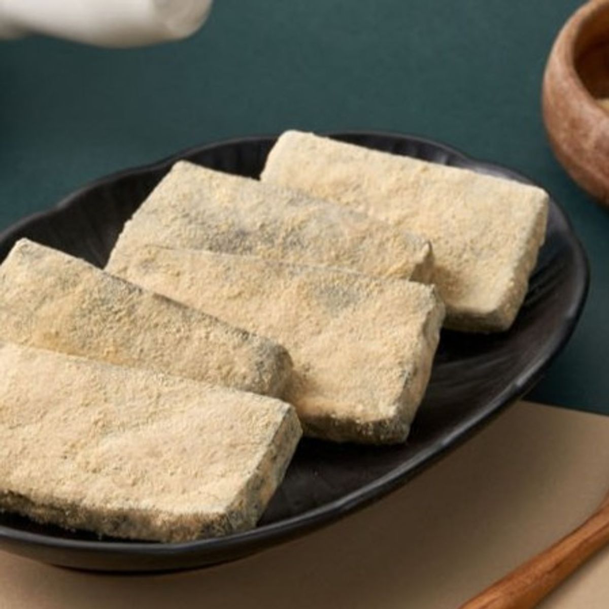 쑥의 진한 향이 입안 가득 퍼져요. 골고루 버무려진 콩고물로 인절미 맛을 살렸답니다. 여름철에는 팥빙수에 토핑으로 올려 드셔도 좋아요.
