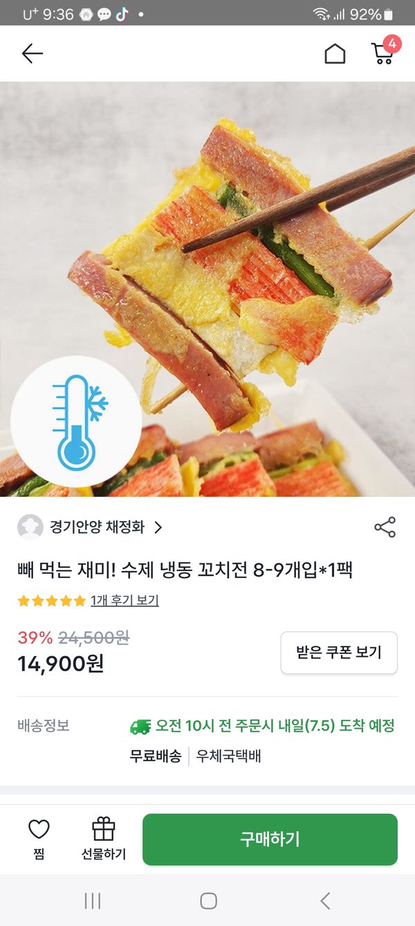 옵션: 수제 냉동 꼬치전 8-9개입*1팩